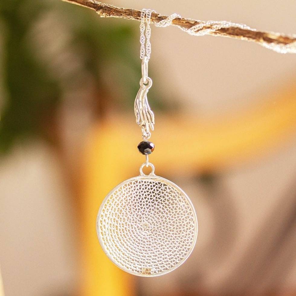 Mexican Sterling Silver Filigree Pendant Necklace 'Hand to the Sun' Item ID: 2671808104