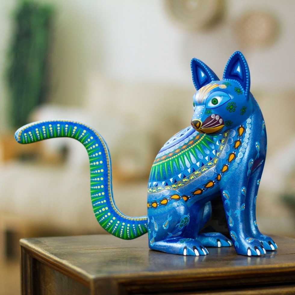 Mexico Alebrije Mystical Cat Sculpture Oaxaca Folk Art 'Cat of the Moon and Water' Item ID: 2669890780