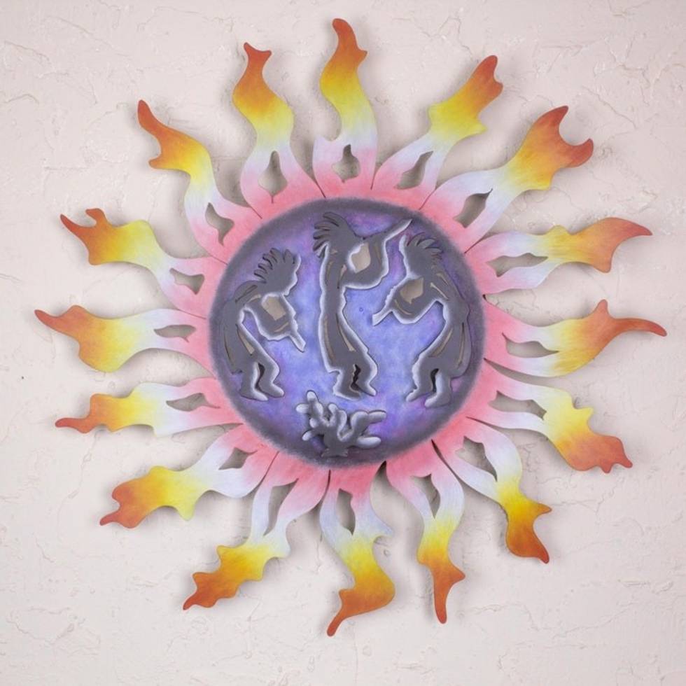 Mexico Modern Kokopelli Steel Wall Art Sun Sculpture 'Kokopelli Sun Dancers' Item ID: 2671808591