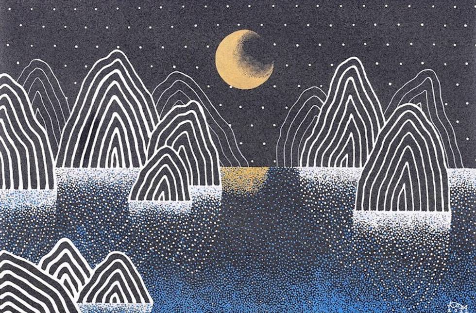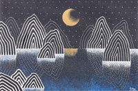 Midnight Mountain Landscape Painting from Thailand 'Night Mountain I' Item ID: 2669889625