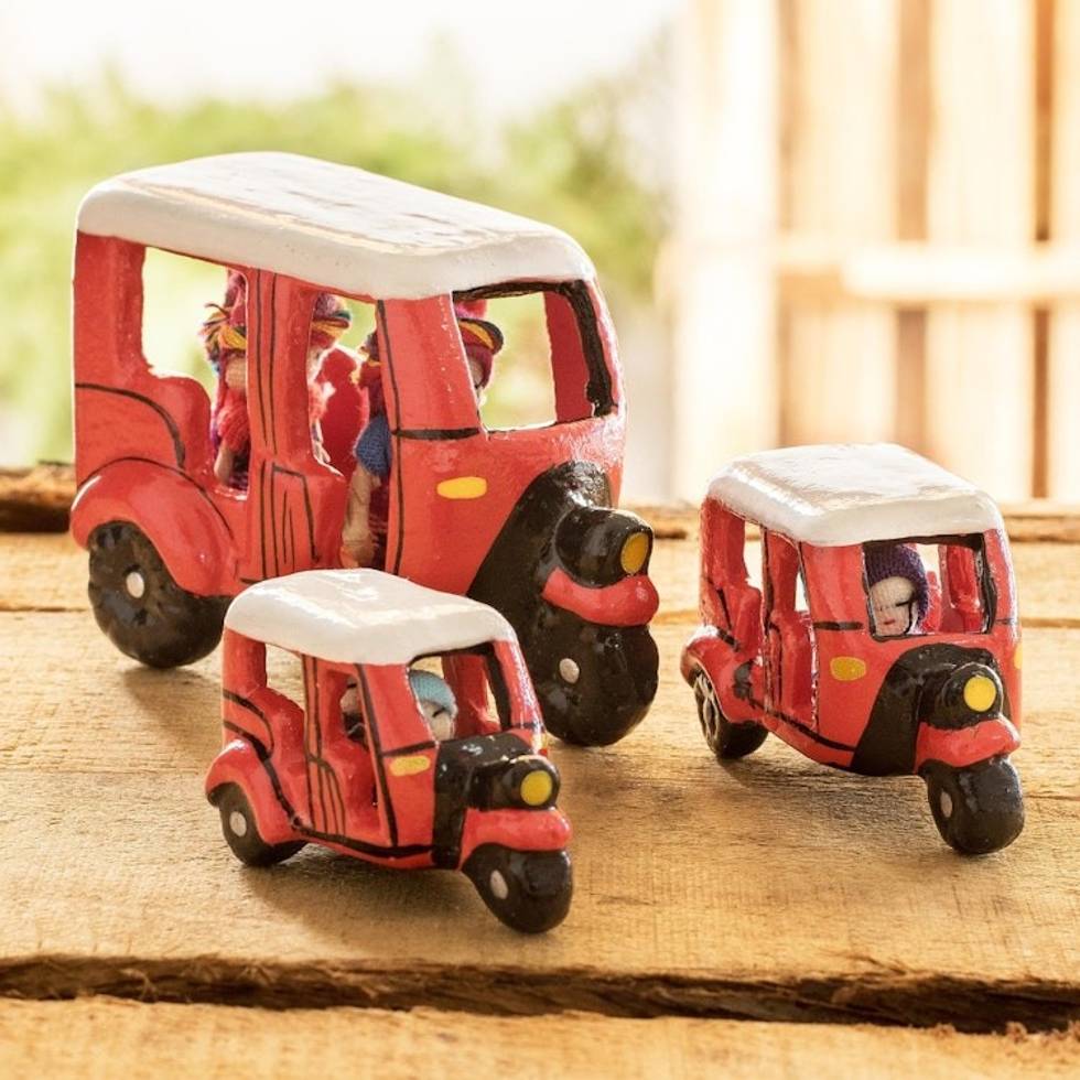 Mini Red Tuc Tuc Taxis with Dolls from Guatemala Set of 3 'Red Tuc Tucs' Item ID: 2671772168
