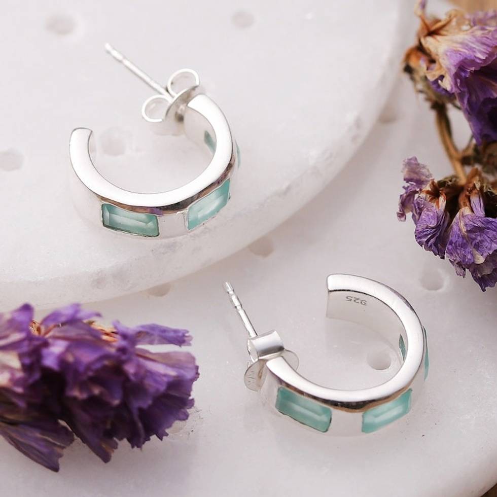 Minimalist 1-Carat Chalcedony Half-Hoop Earrings from India 'Aqua Hoops' Item ID: 2671781360