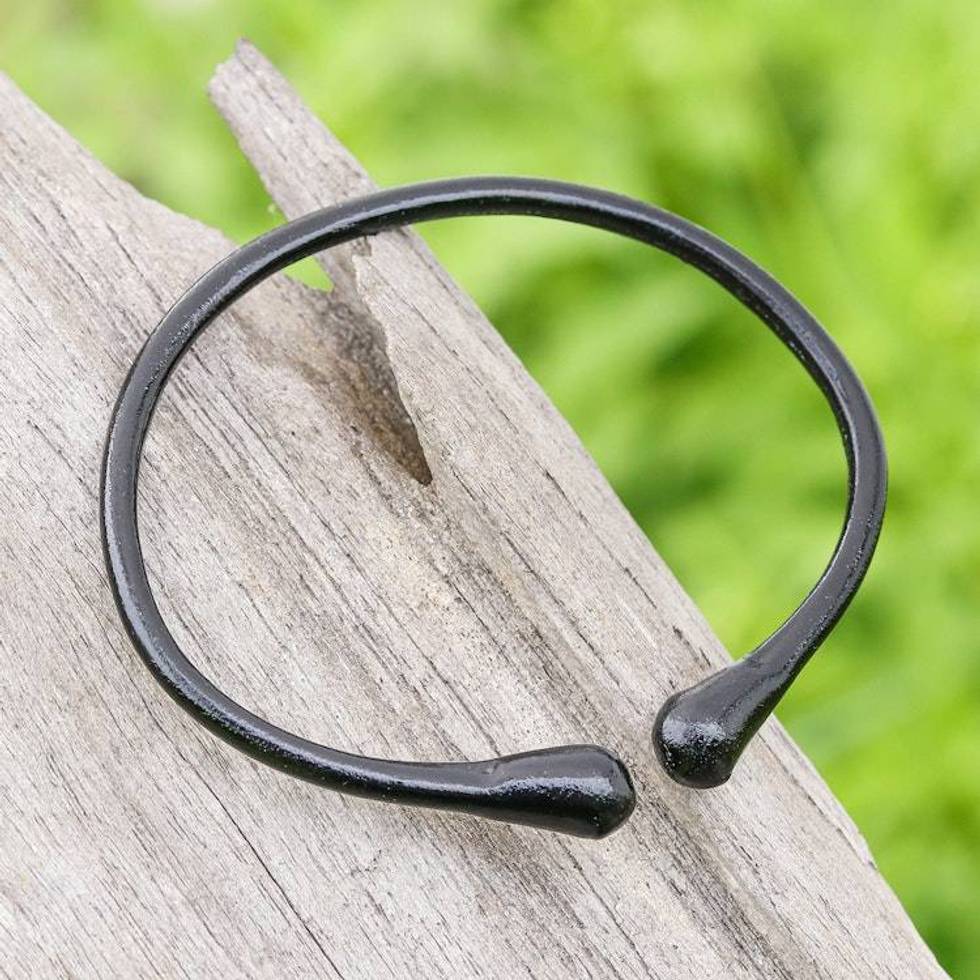 Minimalist Adjustable Leather Cuff Bracelet in Black Shade 'Black Essential' Item ID: 2676648798