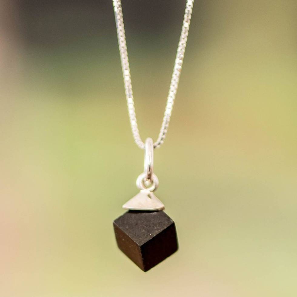 Minimalist Cube Square Black Jade Silver Pendant Necklace 'Black Cube' Item ID: 2671626726