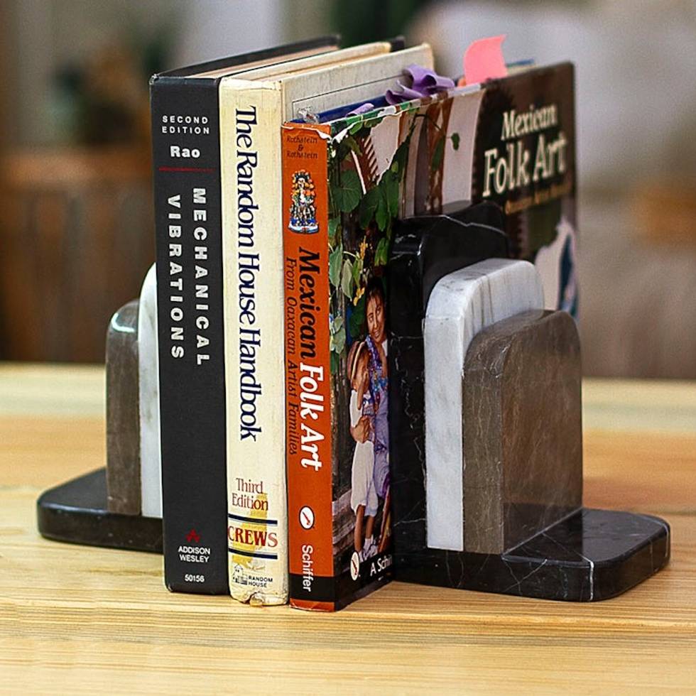 Minimalist Handcrafted Tricolor Natural Marble Bookend Pair 'Illustrious Trio' Item ID: 2671639290