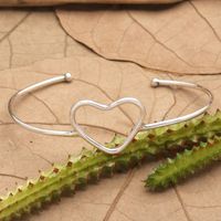 Minimalist Heart Symbol Sterling Silver Cuff Bracelet 'Globe-Trotting's Heart' Item ID: 2671764630