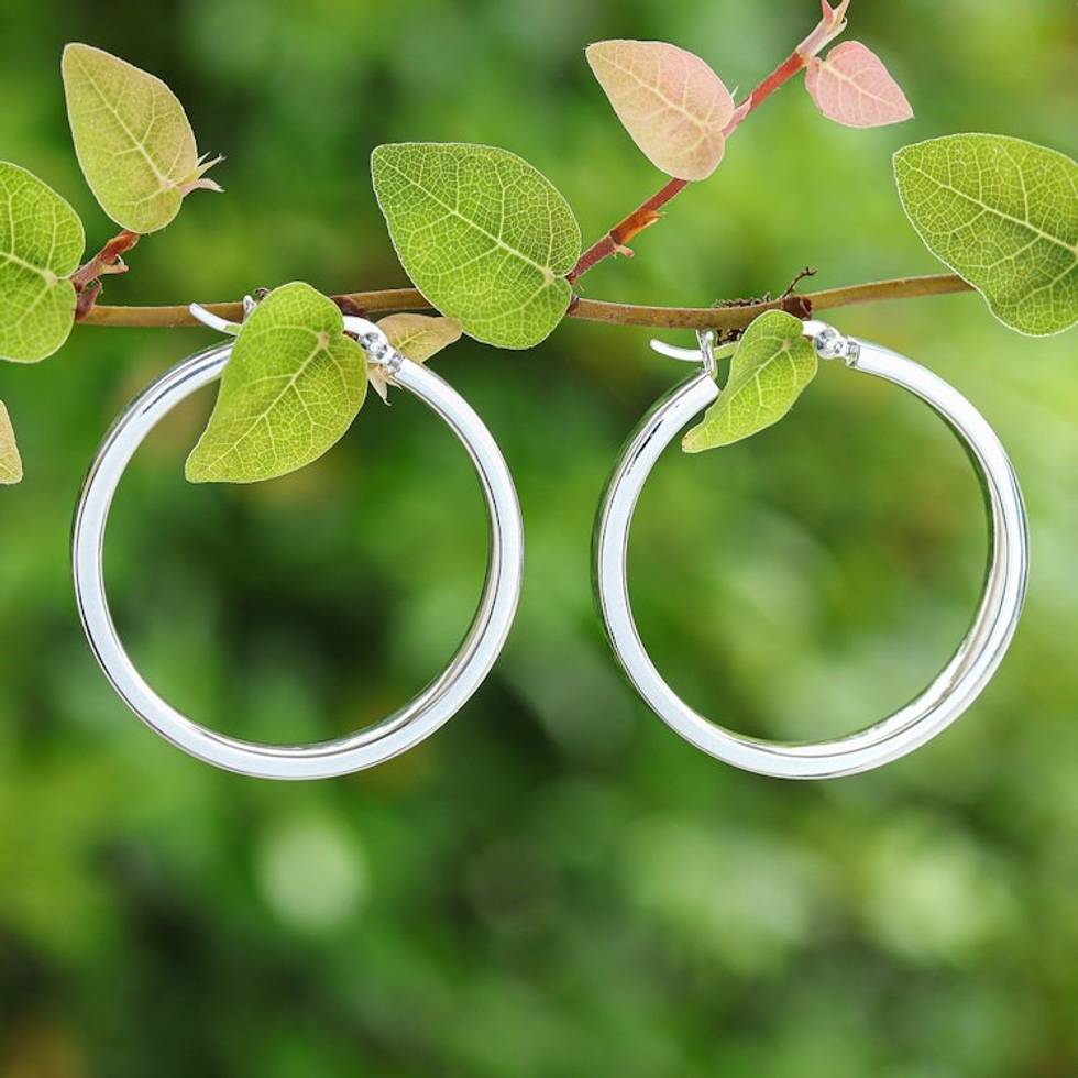 Minimalist-Inspired Polished Sterling Silver Hoop Earrings 'One Thought' Item ID: 2671796769