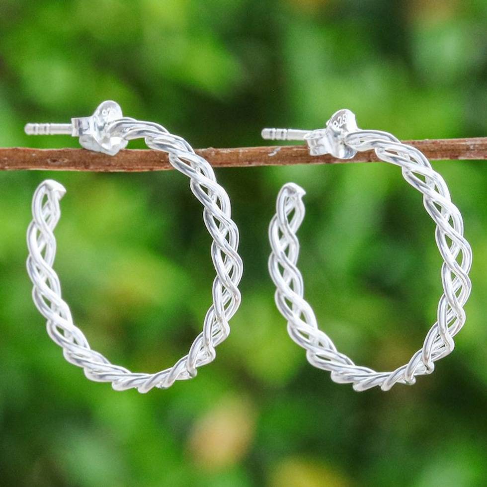 Minimalist-Inspired Sterling Silver Rope Half-Hoop Earrings 'Utopian Ropes' Item ID: 2671796694