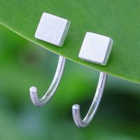 Minimalist Matte Square Sterling Silver Ear Cuff Earrings 'Sole Square' Item ID: 2676650292