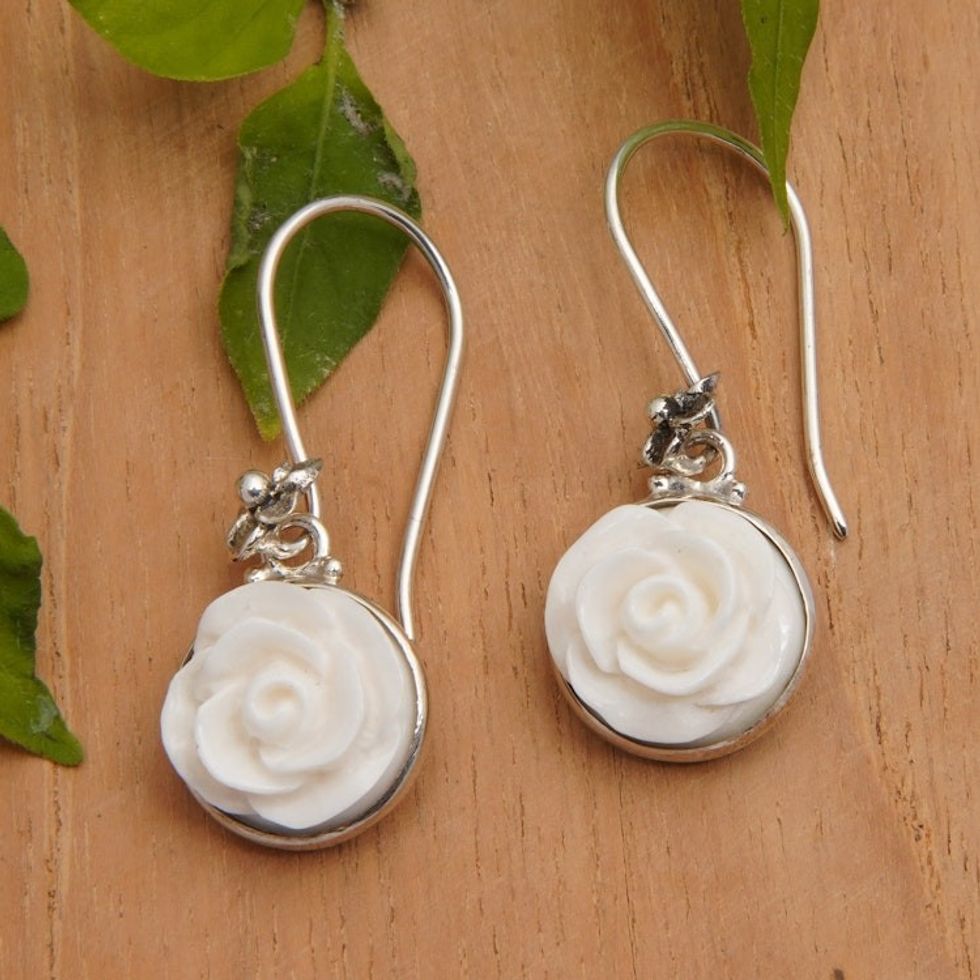 Minimalist Rose-Themed Sterling Silver Dangle Earrings 'Gentle Rose' Item ID: 2669921267