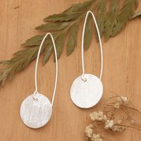 Minimalist Round Sterling Silver Drop Earrings from Bali 'Avant-Garde Moon' Item ID: 2671764645