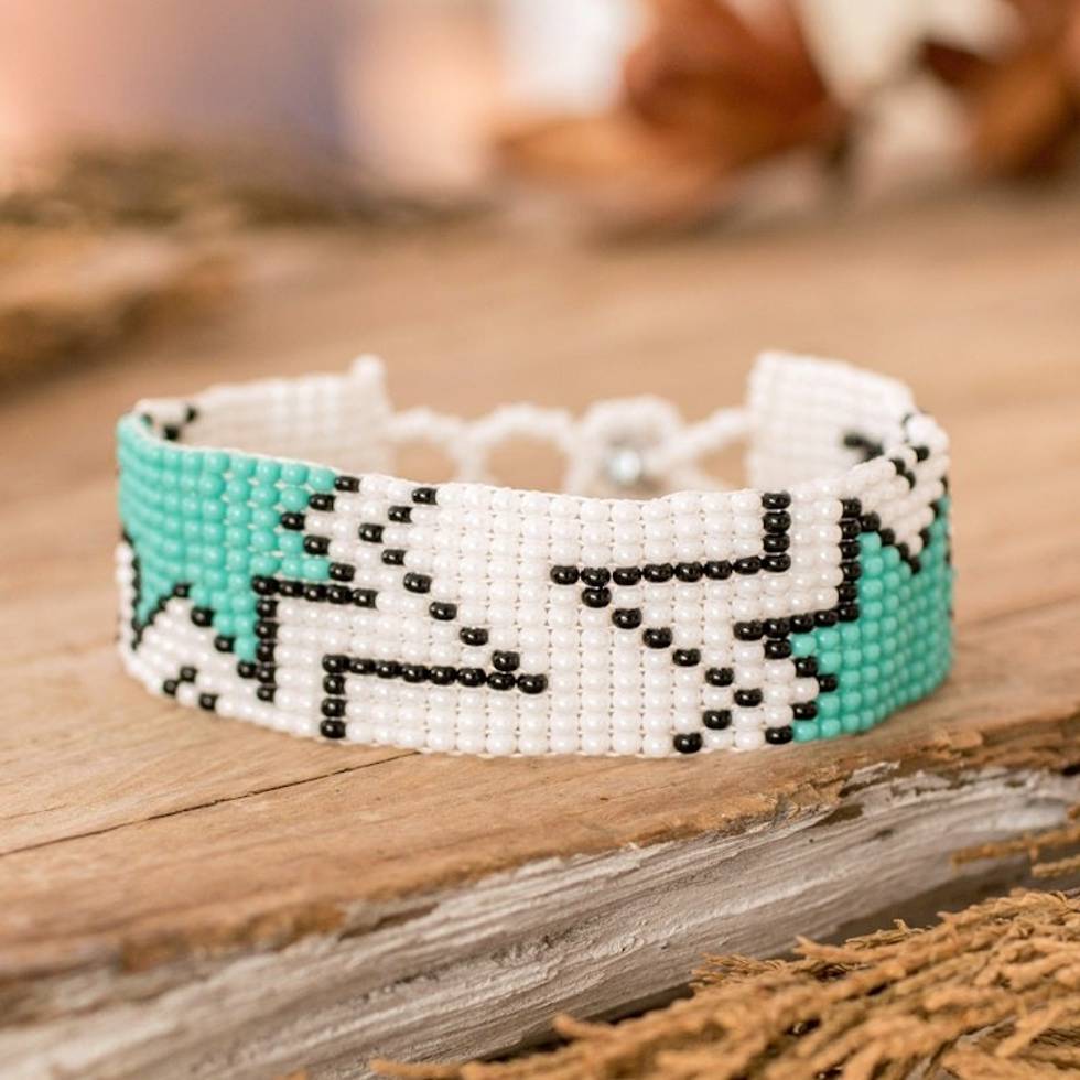 Mint Green and White Glass Beaded Star Wristband Bracelet 'Vital Blast' Item ID: 2671768929