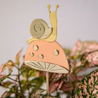 "Cuter than your favorite plant, this mixed metal plant stake features a handcrafted design of a snail perched on a mushroom. Made by artisans in Mexico, this plant stake can be easily placed with your plants, adding shine and character to your blooming beauties. Best for use in indoor plants. May tarnish over time if used outside."
