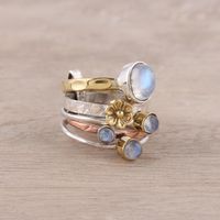 Mixed Metals Floral Rainbow Moonstone Ring from India 'Rain Flowers' Item ID: 2671667392