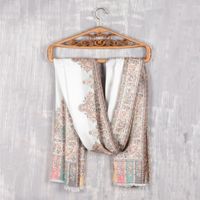 Modal Woven Shawl White with Multicolored Motifs 'Mughal Fresco' Item ID: 2669925430