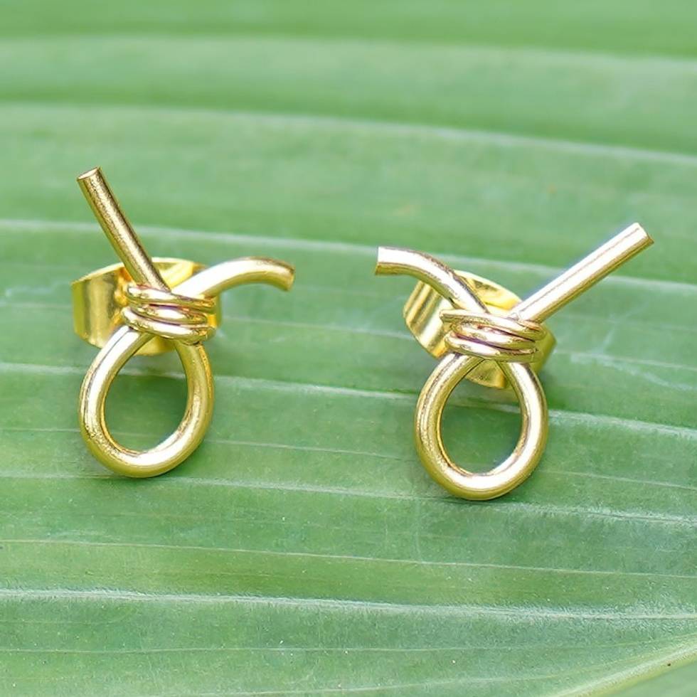 Modern 18k Gold-Plated Brass Button Earrings from Bali 'Future Ribbons' Item ID: 2671762924