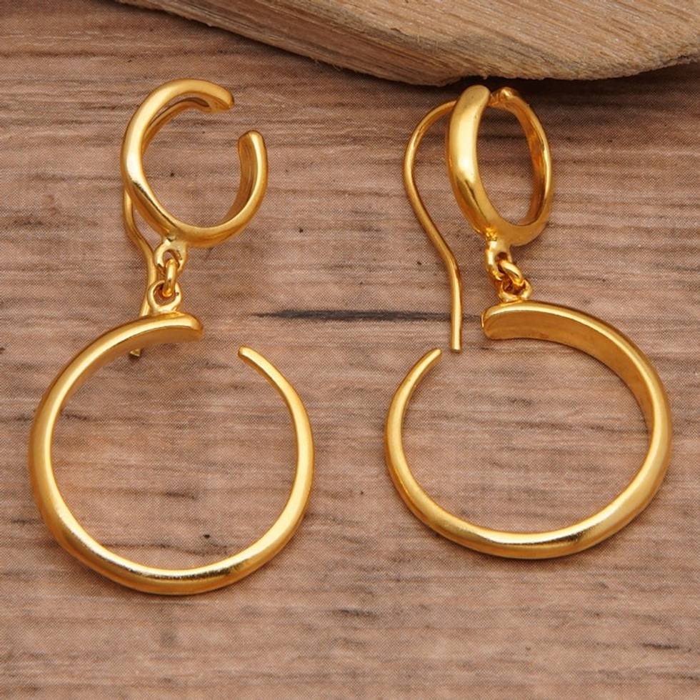 Modern 18k Gold-Plated Brass Dangle Earrings with Hoops 'Radiant Full Moon' Item ID: 2669922975