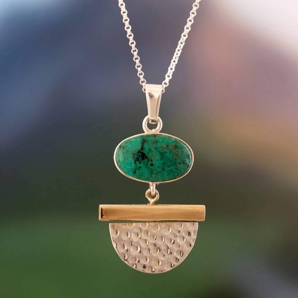 Modern 18k Gold-Plated Natural Chrysocolla Pendant Necklace 'Hypnotic Calm' Item ID: 2671403816