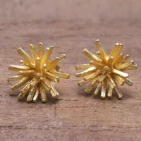 Modern 18k Gold Plated Sterling Silver Stud Earrings 'Golden Coral' Item ID: 2669921006