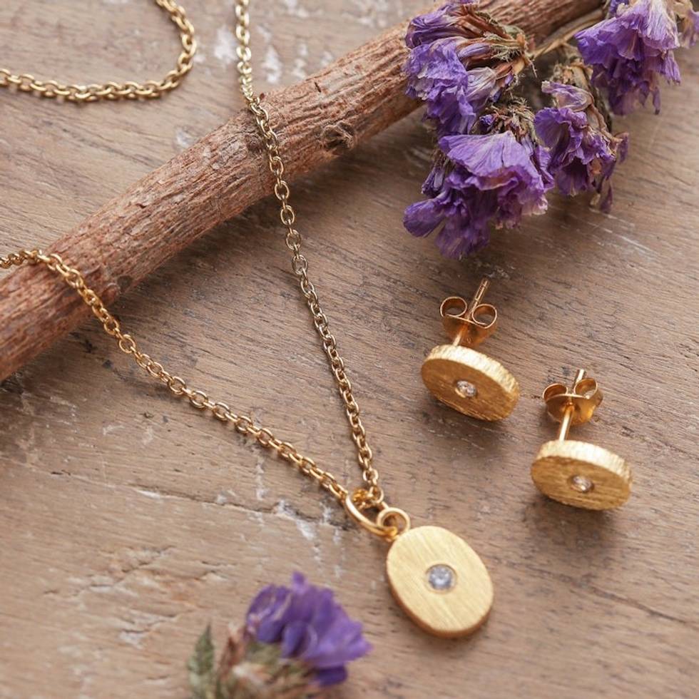 Modern 22k Gold-Plated Necklace and Earrings Jewelry Set 'Victorious Beam' Item ID: 2671781113