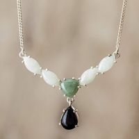 "Guatemalan jade in three natural colors graces a beautiful necklace. Artisans from the Migliozzi Studio select gems in light green, apple green and black for their modern design. Crafted by hand, it comes to life in sterling silver."