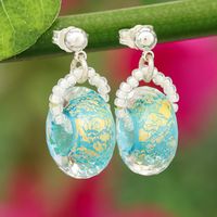 Modern Abstract Handblown Glass Beaded Dangle Earrings 'Luxurious Sky' Item ID: 2671796918