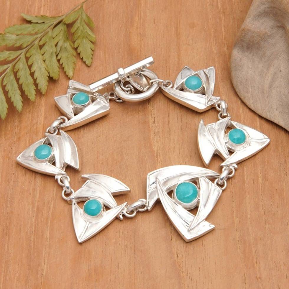 Modern Abstract Link Bracelet with Amazonite Cabochons 'Successful Sailing' Item ID: 2671764273
