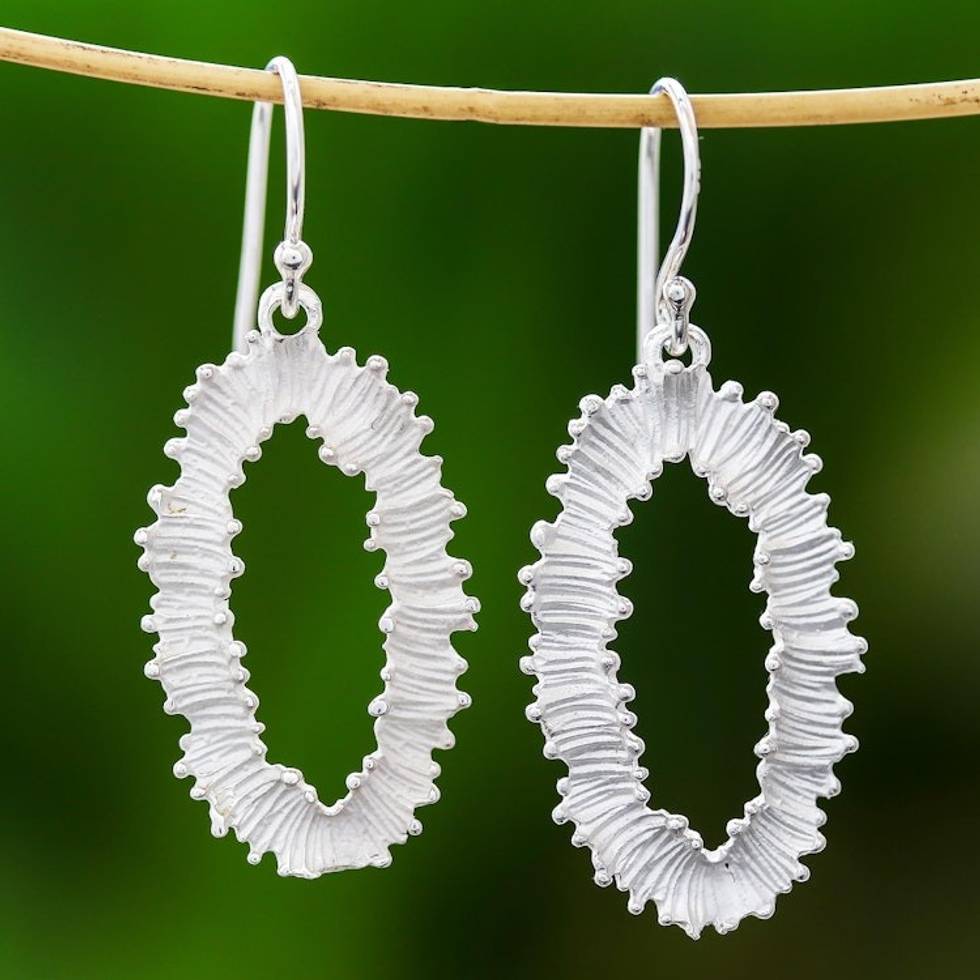 Modern Abstract Sterling Silver Dangle Earrings 'Wavy Rings' Item ID: 2671798379