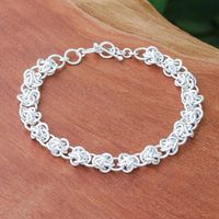 Modern Abstract Sterling Silver Link Bracelet from Thailand 'Tangled Sophistication' Item ID: 2671797246