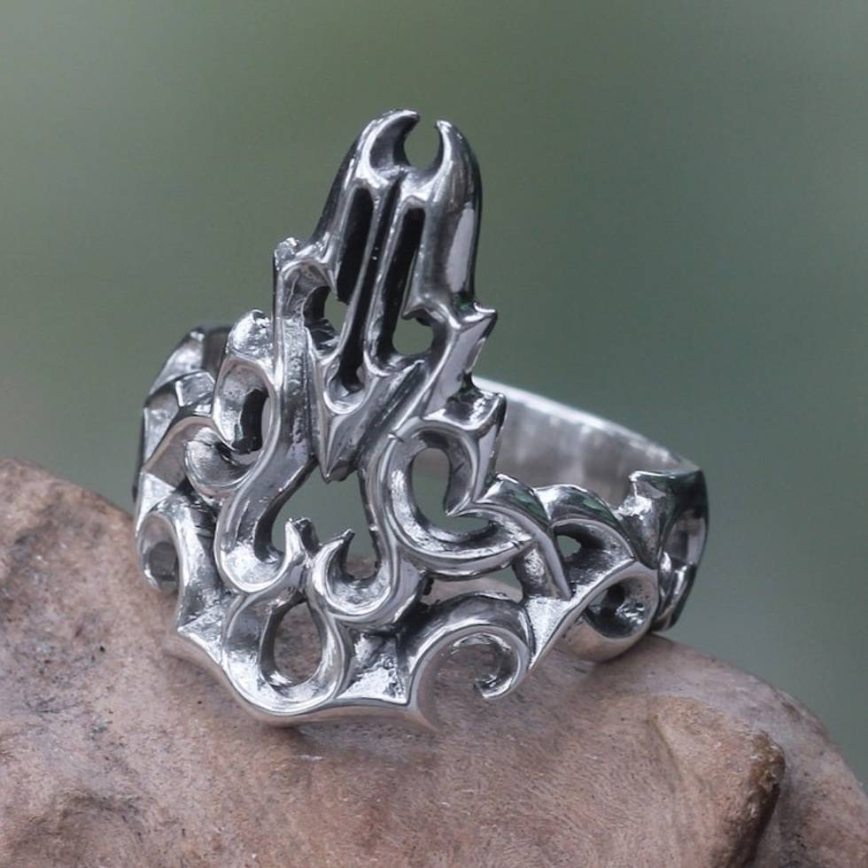 Modern Abstract Sterling Silver Men's Ring Handmade in Bali 'Tongues of Fire' Item ID: 2671702587