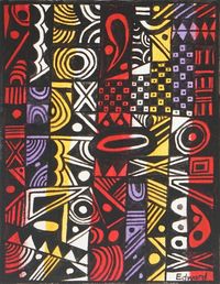 "Born to a Ghanaian mother and a Nigerian father on November 16, 1967, I began drawing at a very tender age, whatever I set my eyes on. What I fancied most, however, was copying pictures of historical figures like Sir Charles MacLean, Guggisberg, and Macarthy, which I found in the history book. Fine Arts was one of the subjects I sat for at the Ordinary Level (middle school) in 1979. Between 1988 and 1990, I sat for the Ordinary National Diploma (OND) and for the Higher National Diploma (HND) in 1995 at the Polytechnic University. I specialized in painting with textile as a subsidiary."