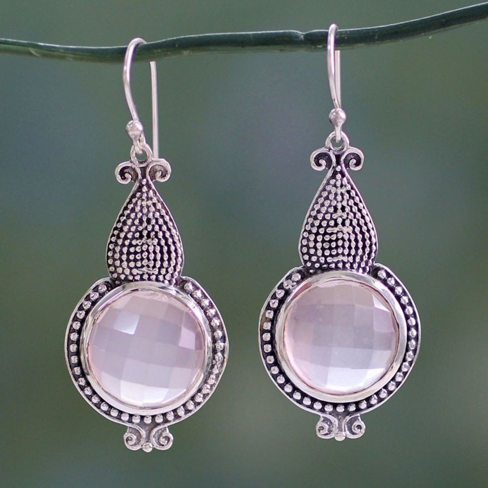 Modern Artisan Crafted Rose Quartz Sterling Silver Earrings 'Misty Glow' Item ID: 2671620231