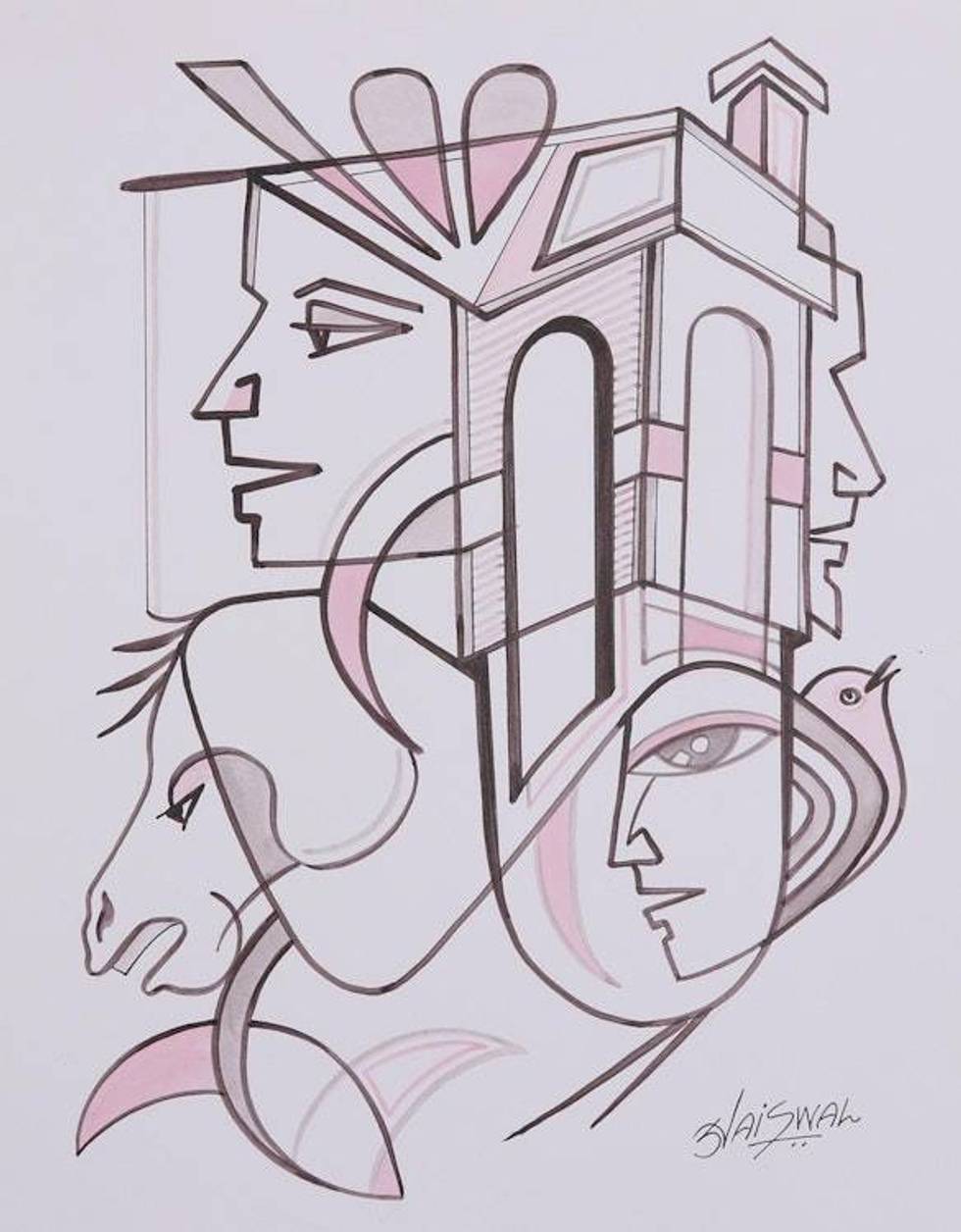 Modern Black and White Cubist Painting from India 'Modern Life' Item ID: 2676665220