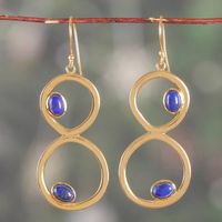 Modern Brass and Lapis Lazuli Dangle Earrings from India 'Royal Infinity' Item ID: 2676664468