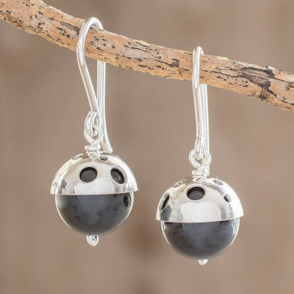 Modern Circular Onyx Dangle Earrings from Nicaragua 'Modern Holes' Item ID: 2671777258