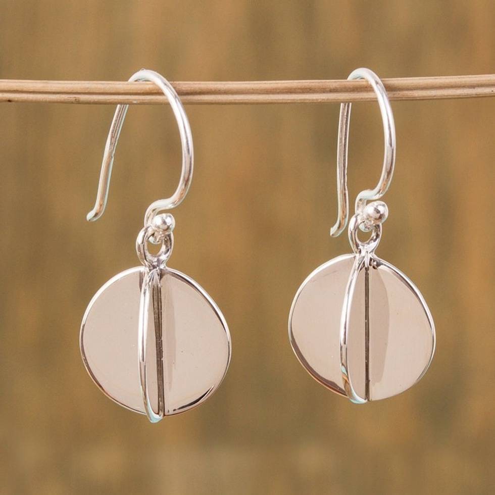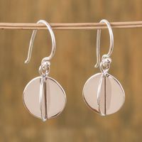Modern Circular Silver Dangle Earrings from Mexico 'Intersected Discs' Item ID: 2671808981