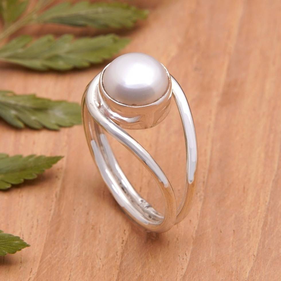 Modern Cocktail Ring with a White Cultured Pearl 'Sophisticated Waves' Item ID: 2671667624