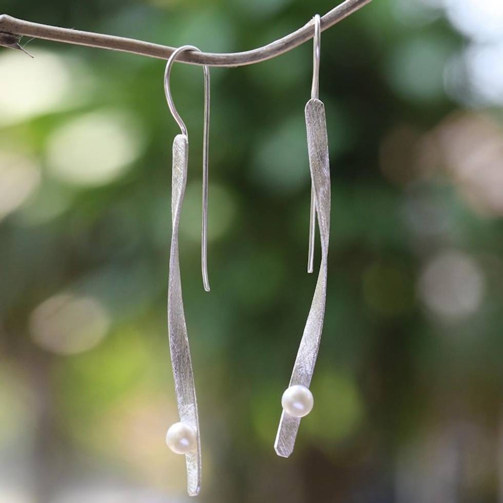 Modern Cultured Pearl Drop Earrings Crafted in Bali 'Dewy Twist' Item ID: 2669921298