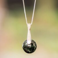 Modern Dark Green Jade Silver Necklace with Round Pendant 'Green Circle of Love' Item ID: 2676659501