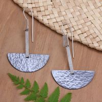 Modern Dark Sterling Silver and Copper Dangle Earrings 'Dark Half-Circle Modernity' Item ID: 2671737532