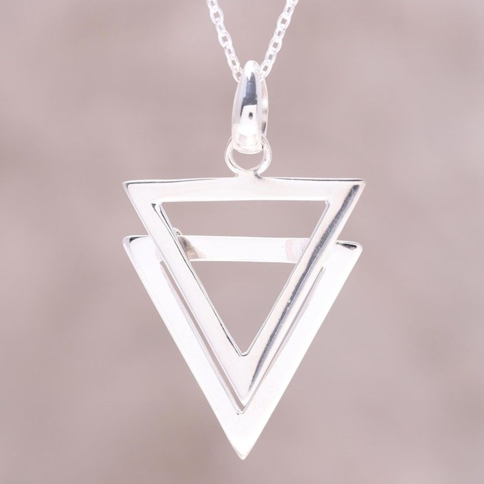 Modern Double Triangle Sterling Silver Pendant Necklace 'New Direction' Item ID: 2671792426