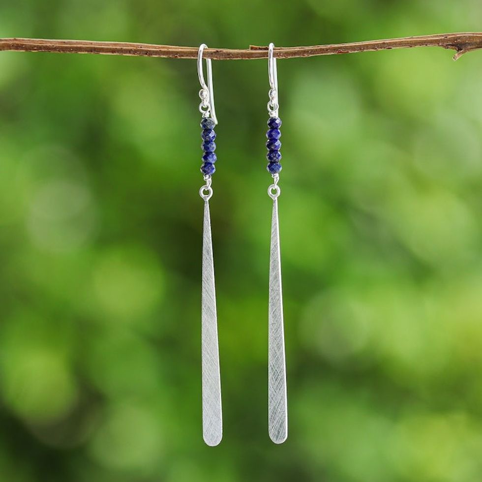 Modern Drop-Shaped Lapis Lazuli Silver Dangle Earrings 'Modern Drop' Item ID: 2671796559