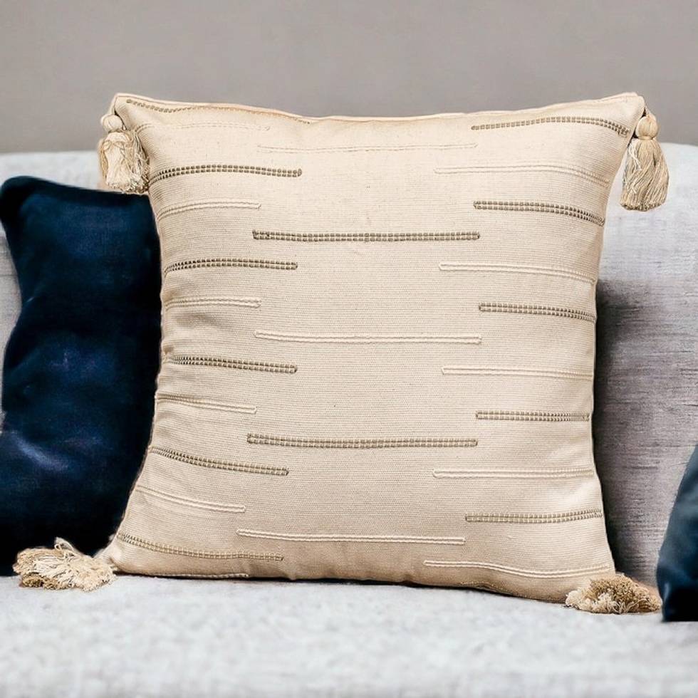 Modern Embroidered Ivory Cotton Cushion Cover with Tassels 'Forest Glades' Item ID: 2671769445