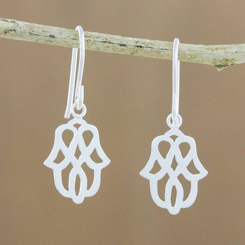 Modern Floral Motif Sterling Silver Dangle Earrings 'Beautiful Symmetry' Item ID: 2671801583