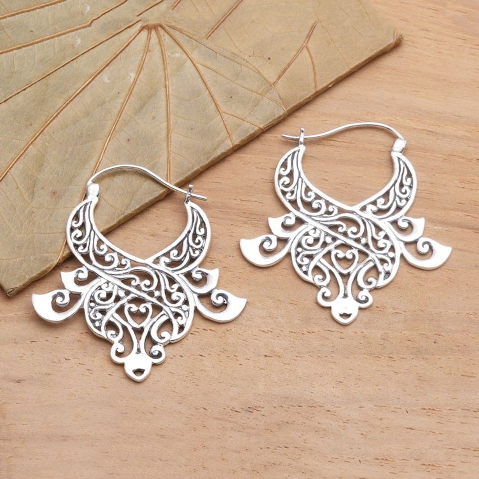 I was looking for sterling silver hoop earrings. These are beautifully made with a sculpting that just matches the ring & necklace I had to wear with them. I love wearing pieces of art someone has made for me to enjoy.CathyArlington, Tex