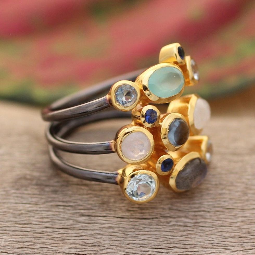 Modern Gold-Accented Multi-Gemstone Cocktail Ring from India 'Multicolored Fusion' Item ID: 2671667463