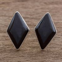 Modern Guatemalan Black Jade Post Earrings 'Midnight Maya Diamond' Item ID: 2671777851