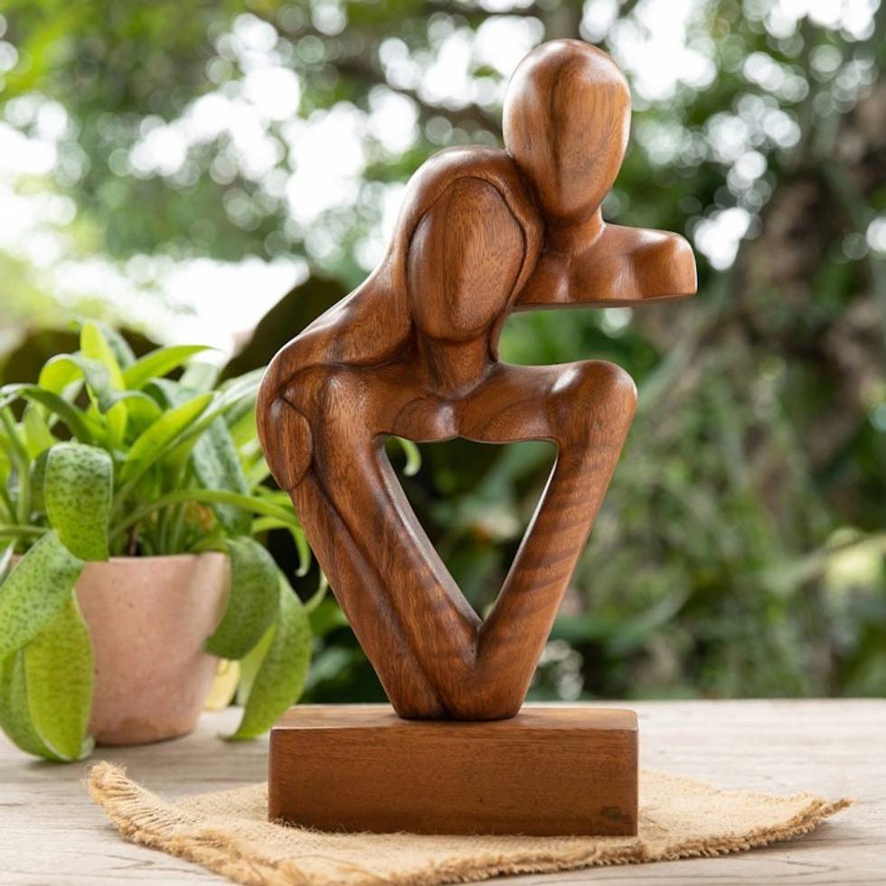 Modern Hand-Carved Suar Wood Sculpture of Abstract Couple 'Sweet Couple' Item ID: 2671765219
