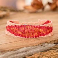 "Love and its harmonious aura decorate this wristband bracelet, made by the Artisans of Panabaj. A Guatemalan team crafts the accessory, forming a modern glass-beaded pattern of pink, red, and orange colors. Allowing a fitted look, a crystal crowns the bracelet's button closure."
