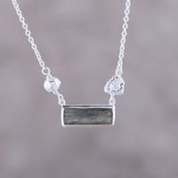 Modern Labradorite and Sterling Silver Pendant Necklace 'Sliver of Dusk' Item ID: 2671792603